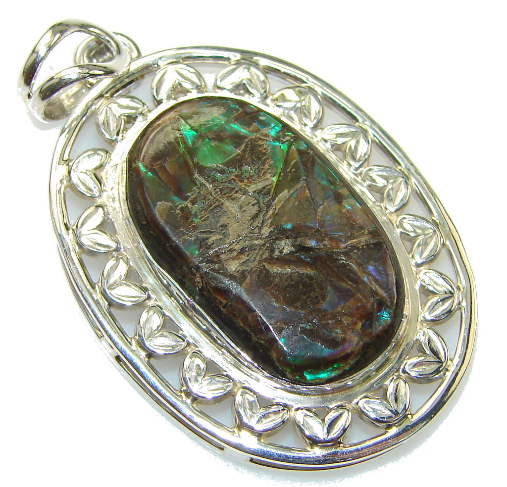 Grren Secret! Ammolite Sterling Silver Pendant