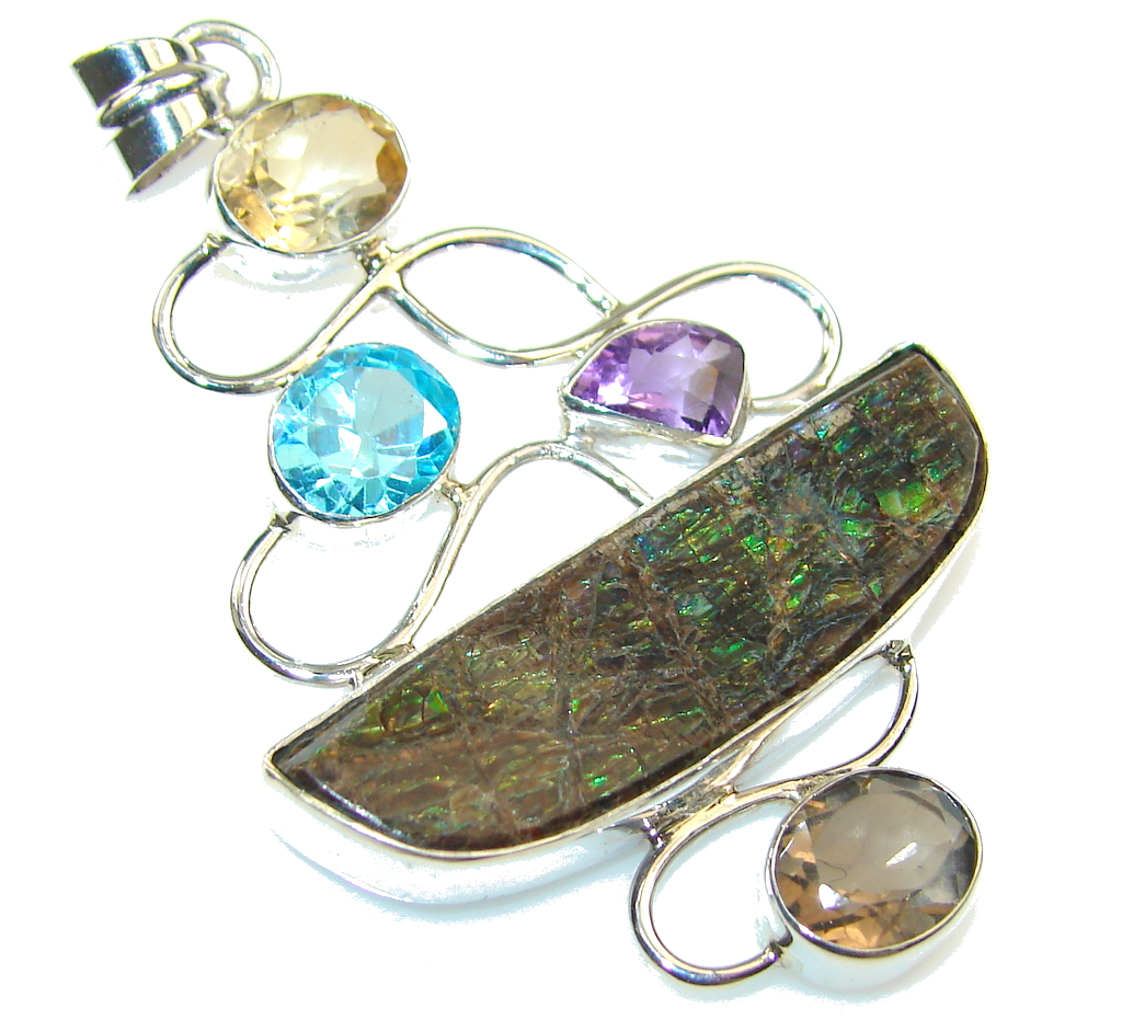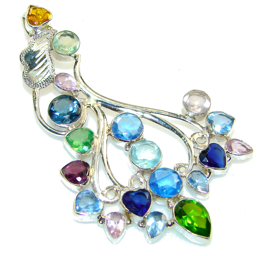 Big! Aura Of Beauty!! Multigem Sterling Silver Pendant