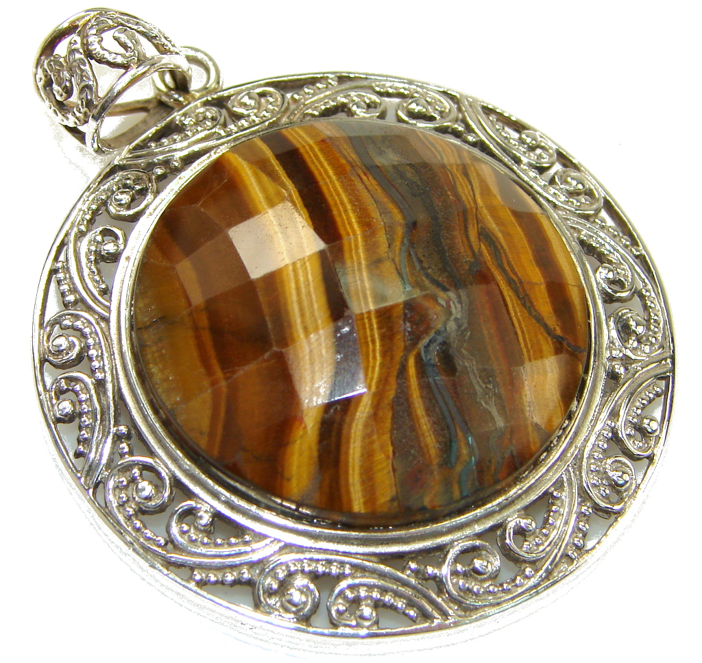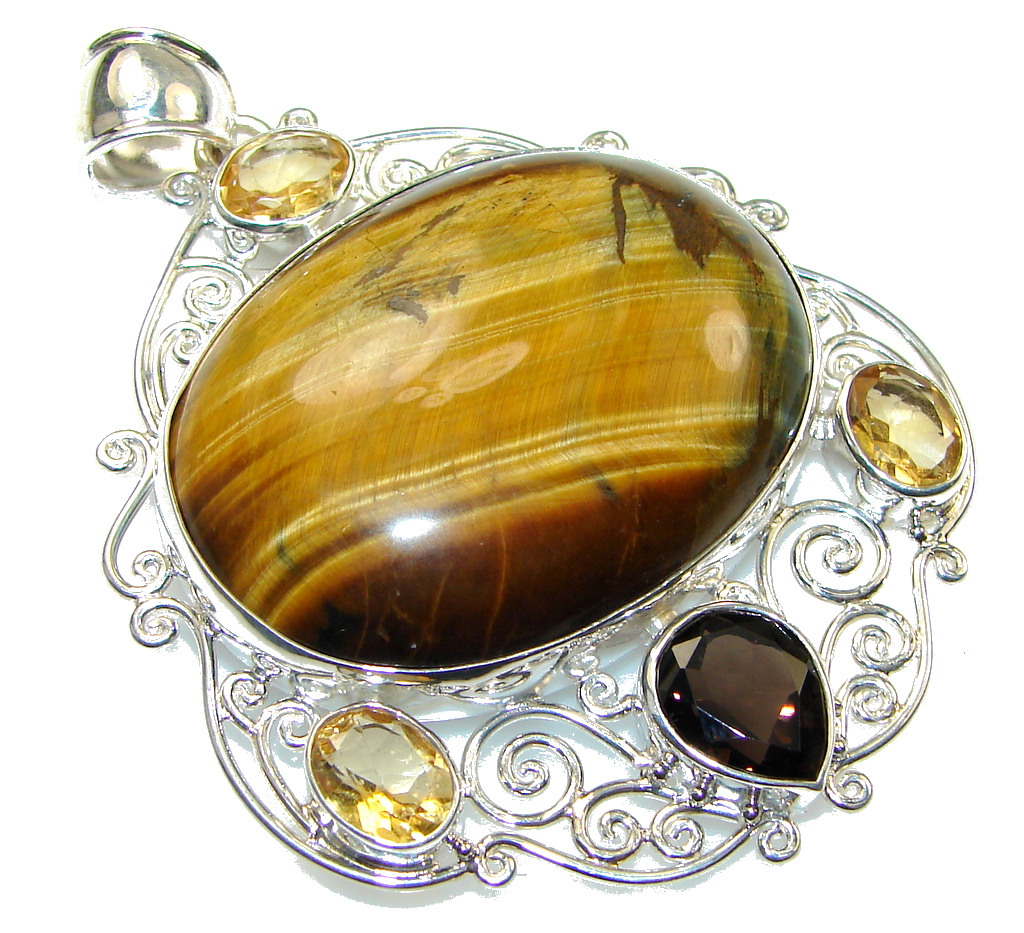 Beautiful! Brown Tigers Eye Sterling Silver Pendant