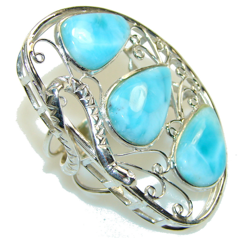 Large! Fashion Blue Larimar Sterling Silver Ring s. 12