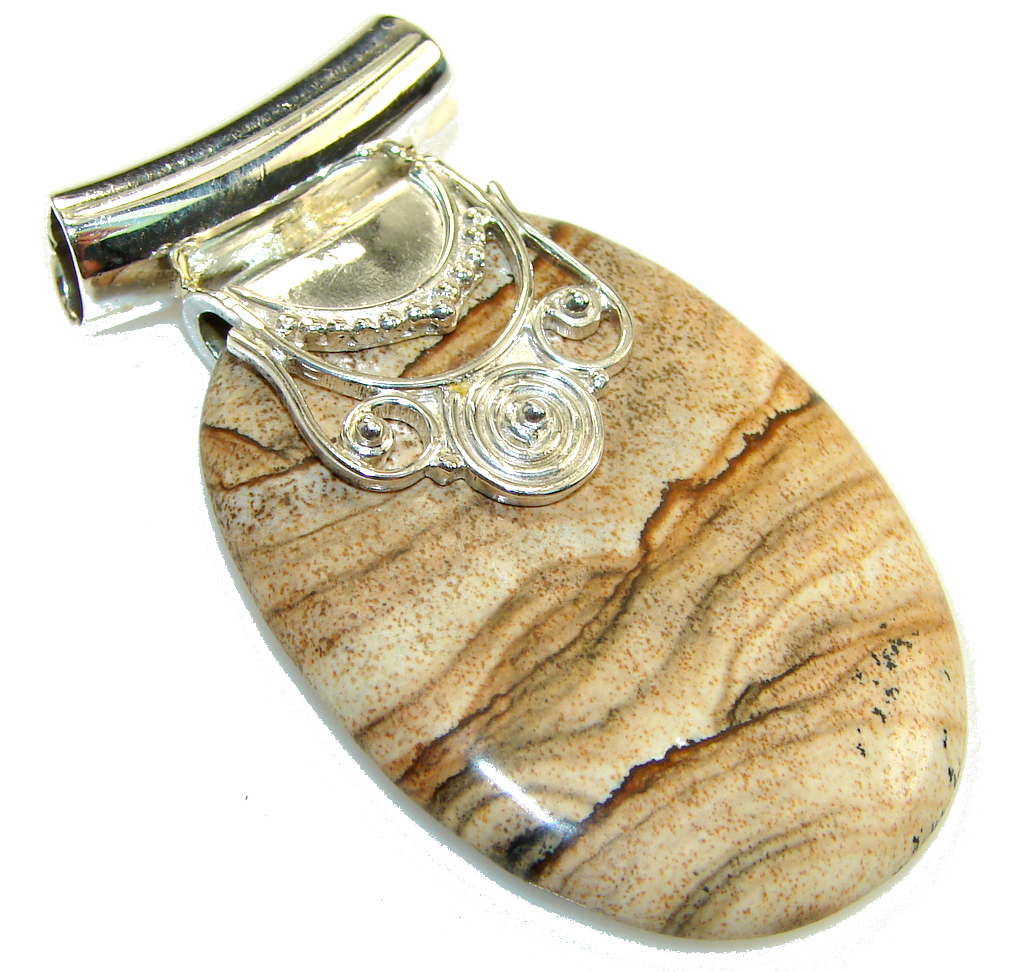 New Life!! Brown Picture Jasper Sterling Silver Pendant