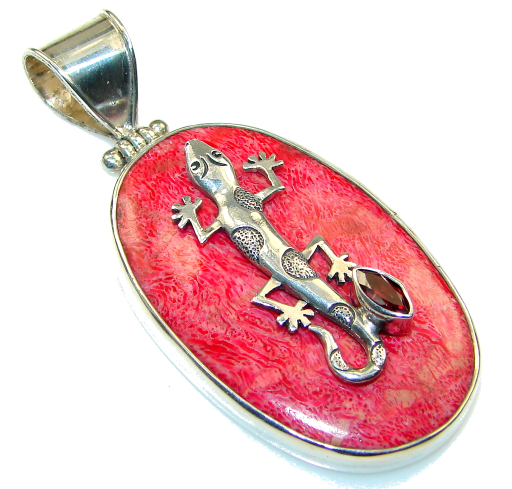 Stylish Red Fossilized Coral Sterling Silver pendant