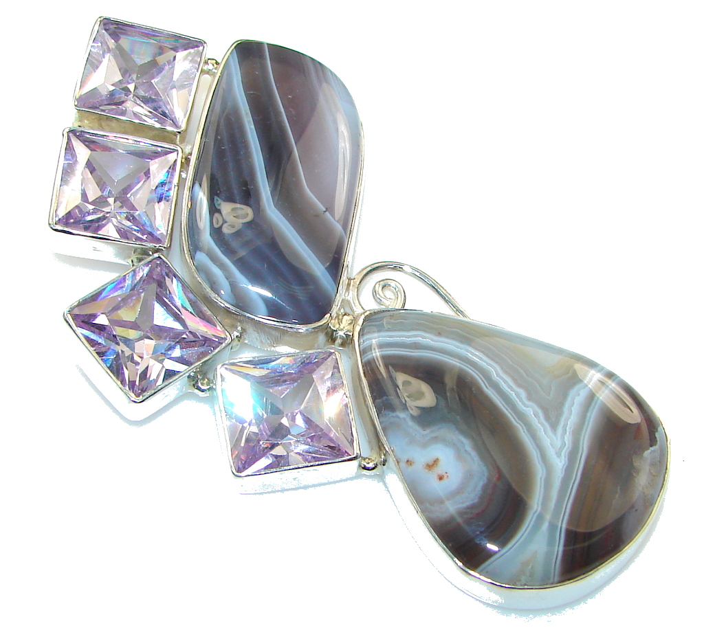 Big! Fantastic Gray Botswana Agate Sterling Silver Pendant
