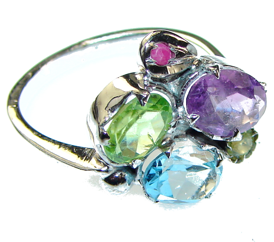 Beautiful Design! Magic Topaz Sterling Silver Ring s. 8 3/4