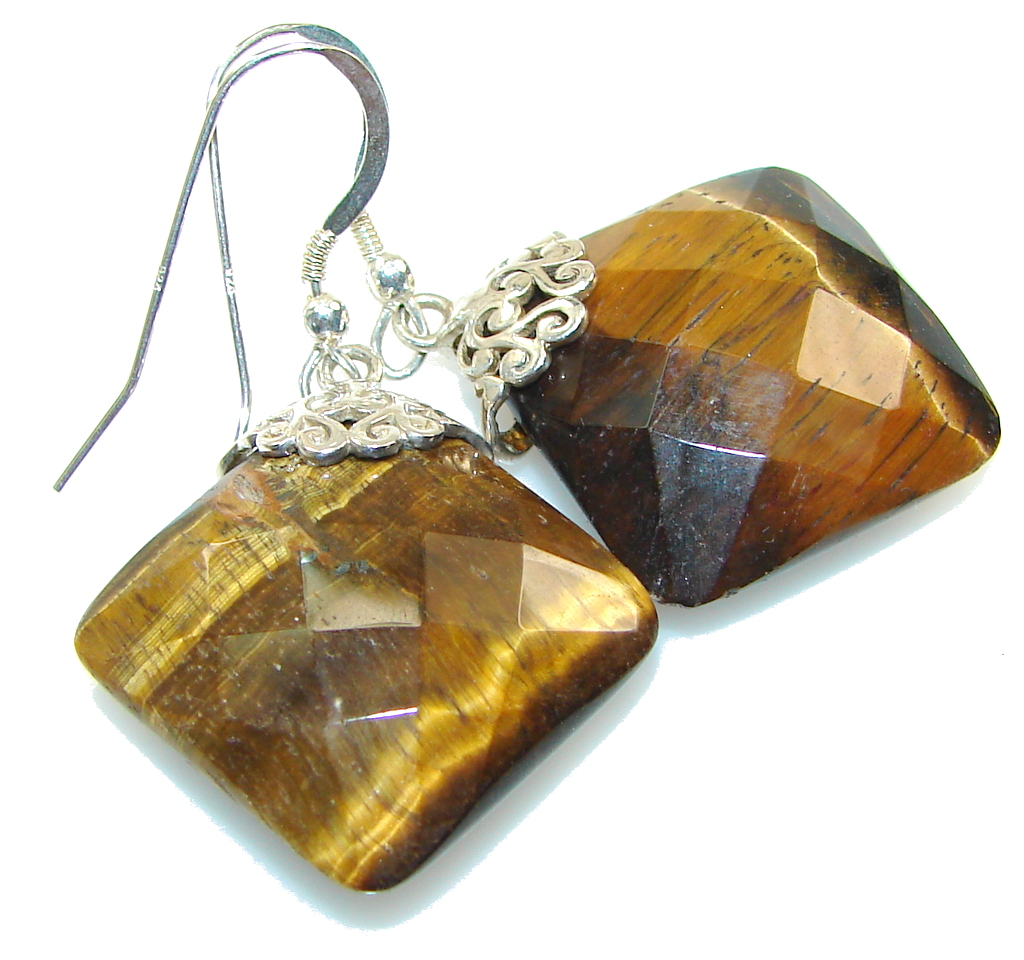 Fabulous! Brown Tigers Eye Sterling Silver earrings