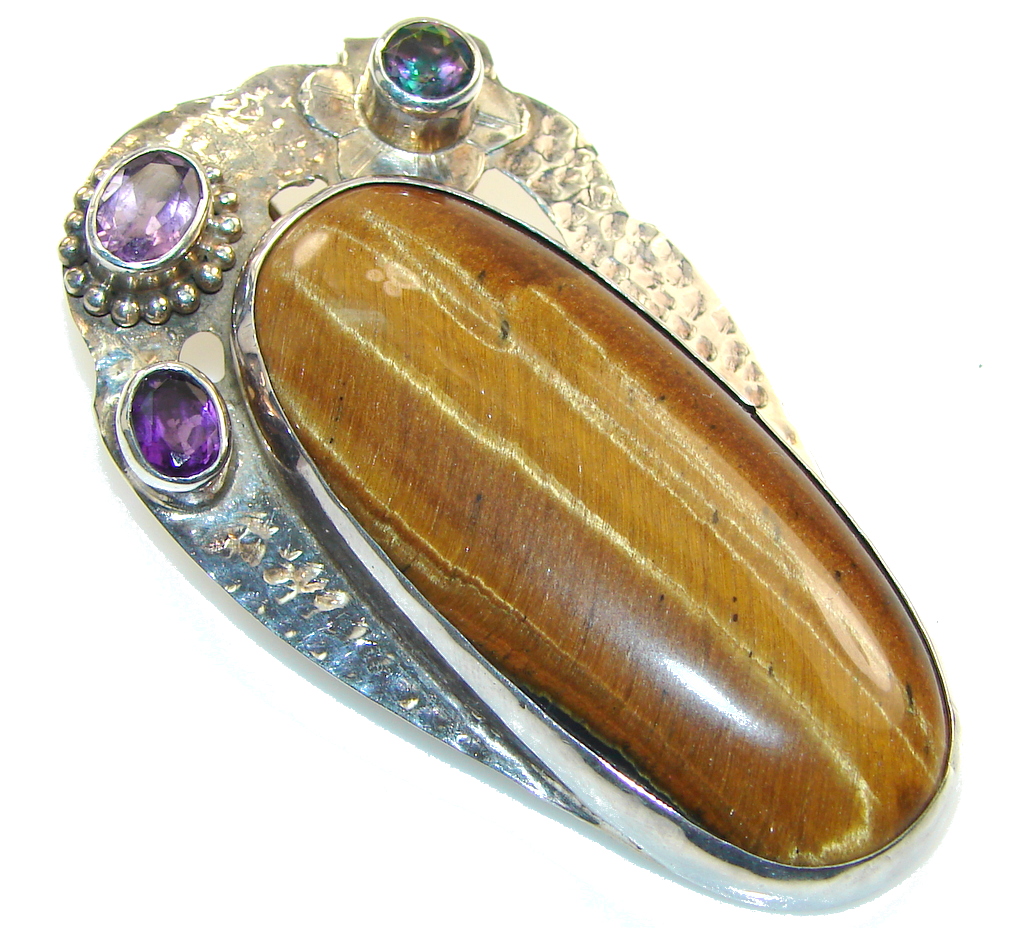 New Design!! Brown Tigers Eye Sterling Silver Pendant