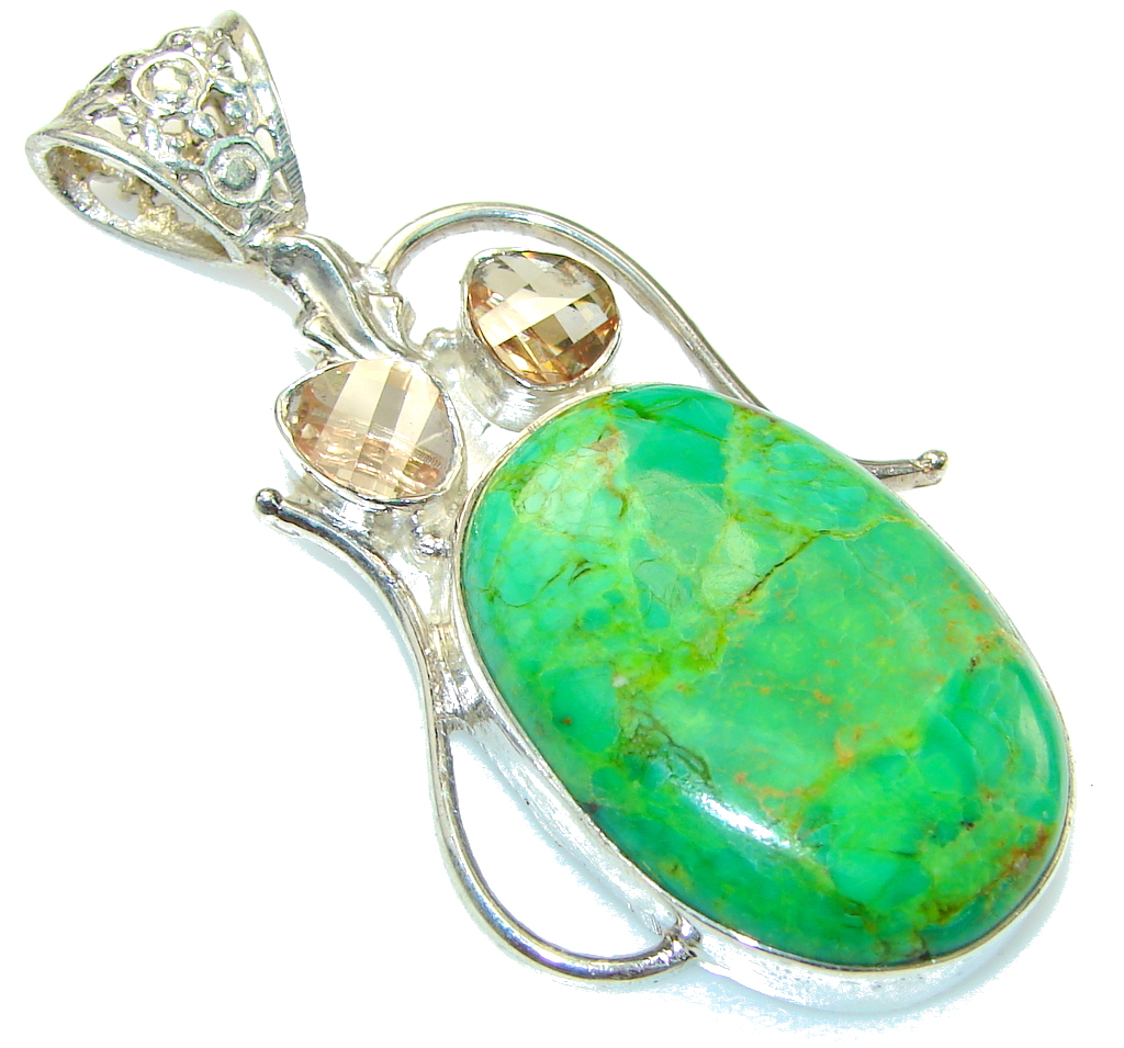Fresh Green Turquoise Sterling Silver Pendant
