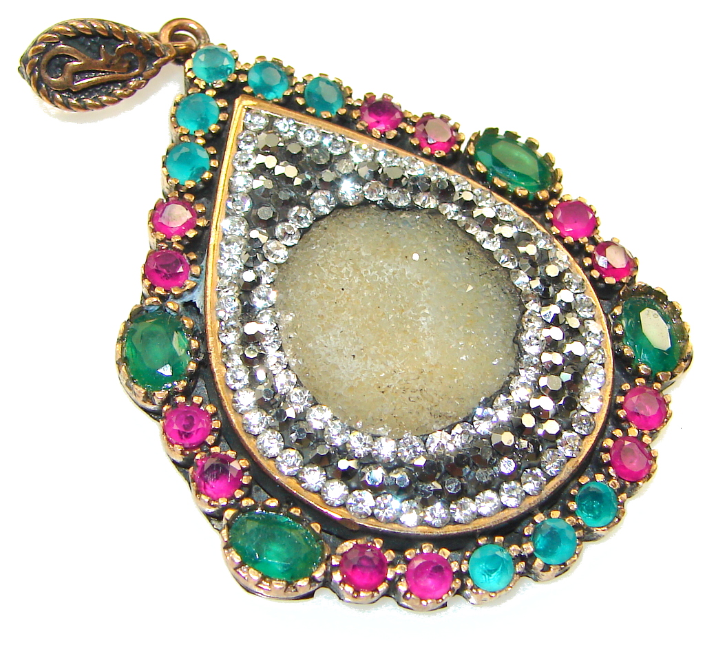 Stylish Design!! Turkish Druzy Sterling Silver Pendant