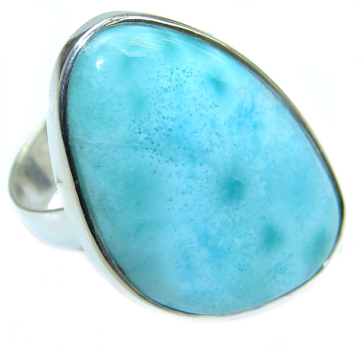 Natural Larimar .925 Sterling Silver handcrafted Ring s. 8 adjustable