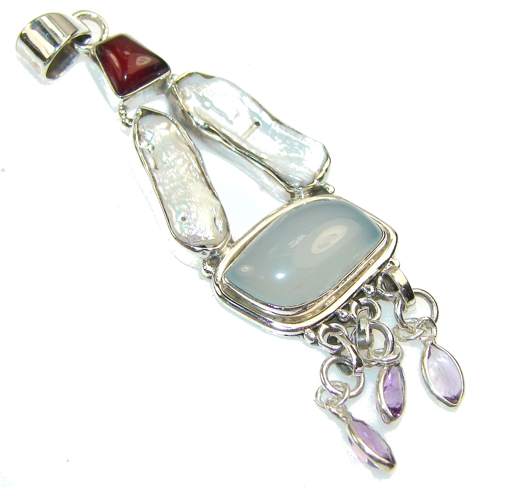 Classy Design!! Light Blue Agate Sterling Silver Pendant