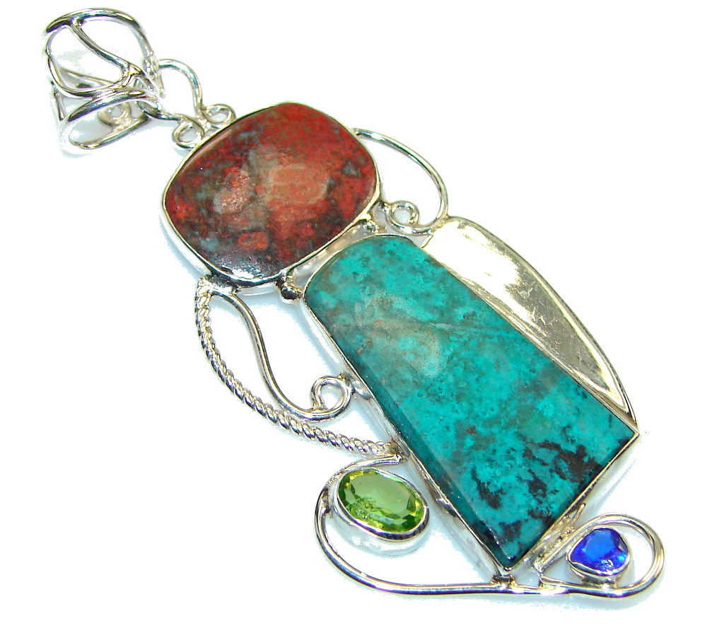 Large!! Stylish Wild Horse Jasper Sterling Silver Pendant