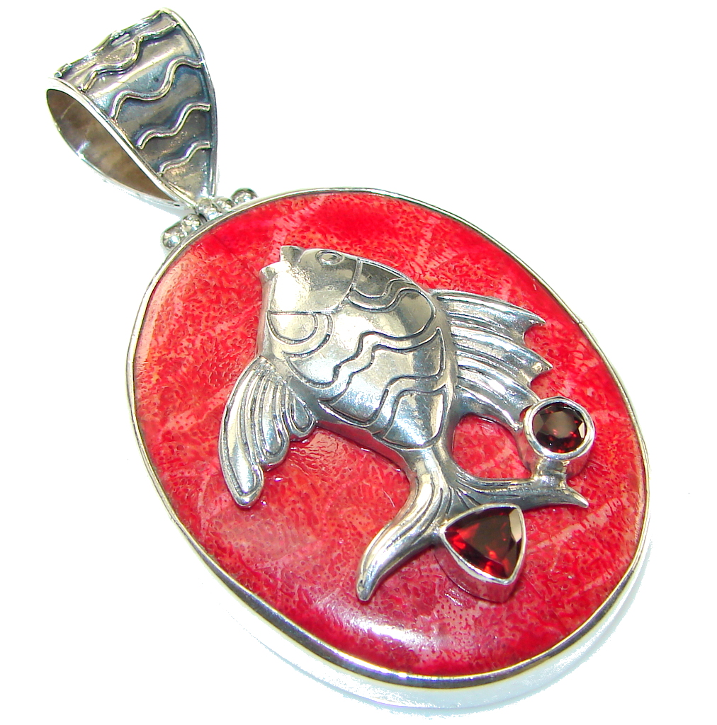 Stylish! Fossilized Coral Fish Sterling Silver pendant