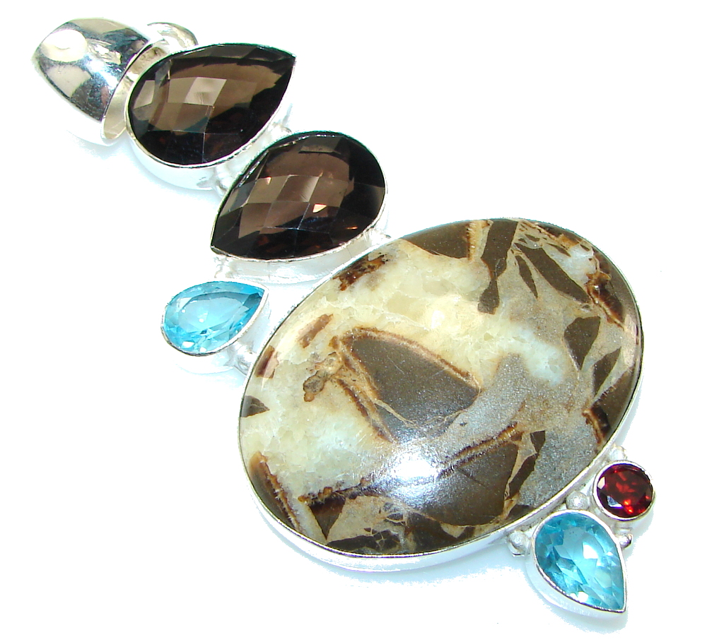 Big! Wild Beauty!! Brown Shell Sterling Silver Pendant