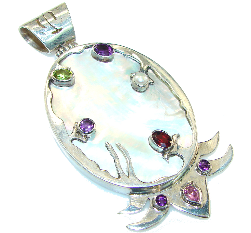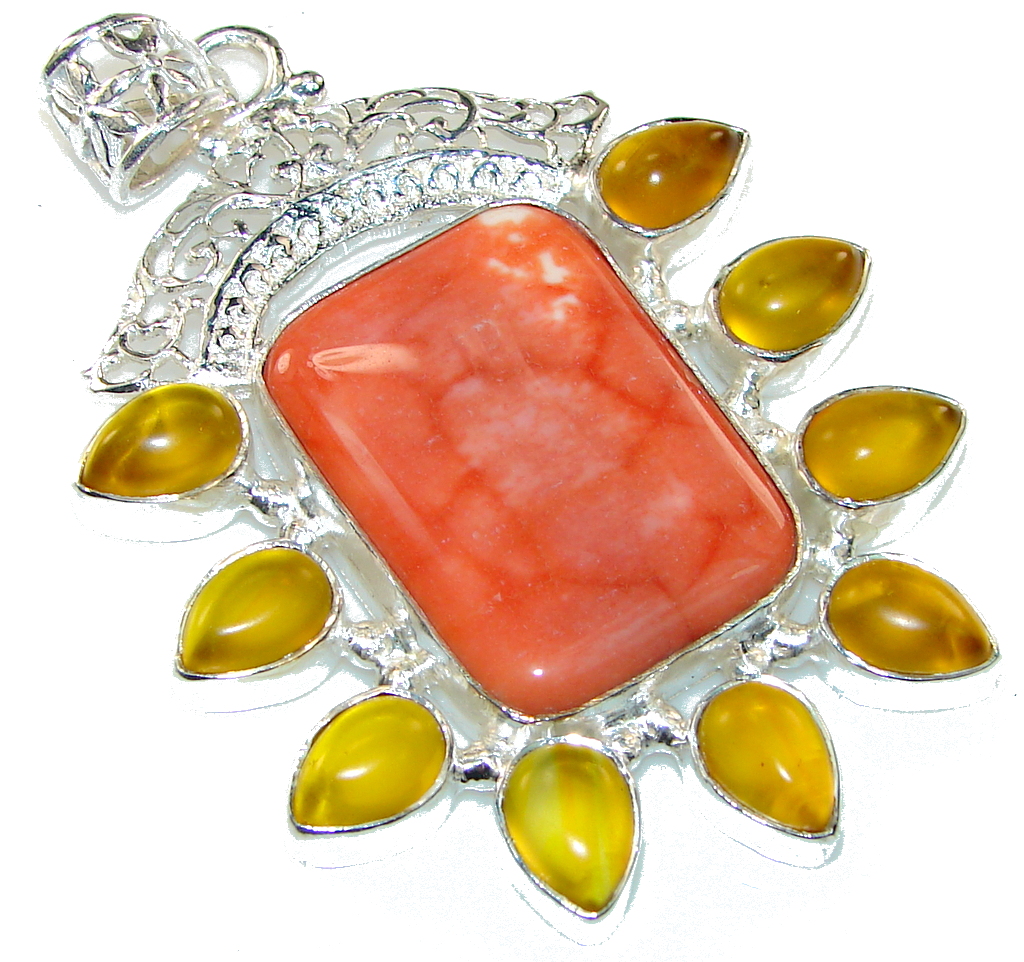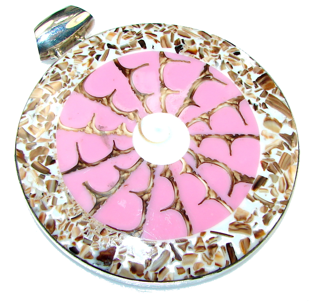 Big! Precious Ocean Pink Shell Sterling Silver Pendant