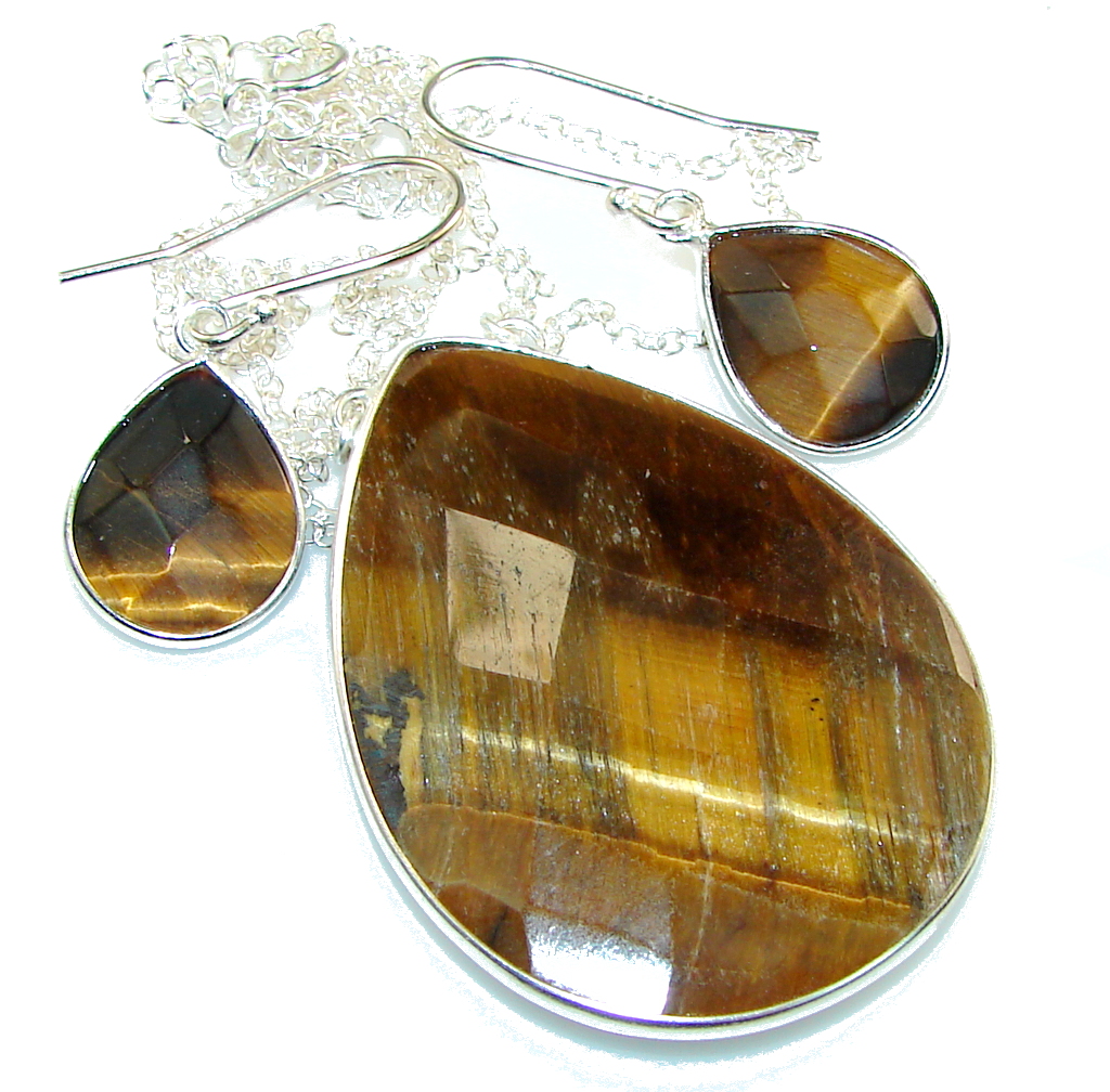 Delicate! Brown Tigers Eye Sterling Silver Necklace / Earrings