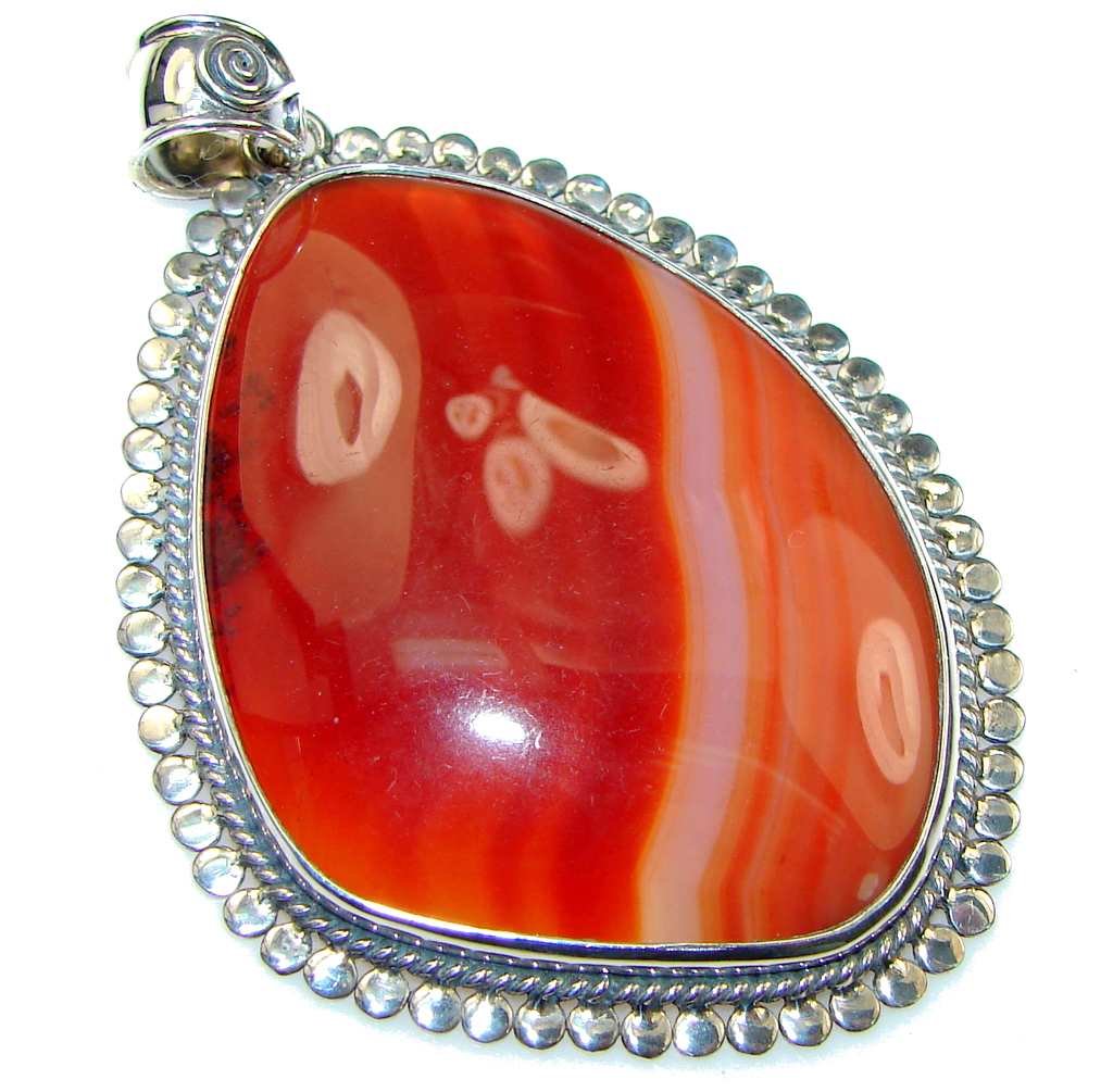 Empress Garden!! Orange Botswana Agate Sterling Silver Pendant