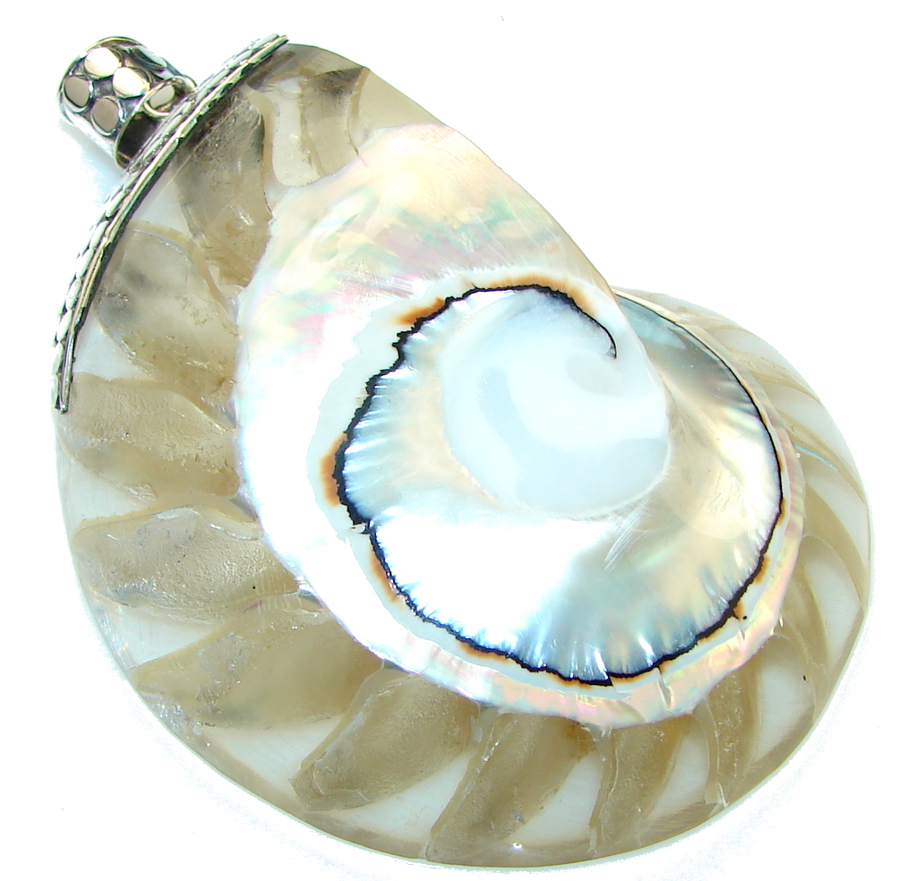 Big!! Secret Yellow Ocean Shell Sterling Silver Pendant