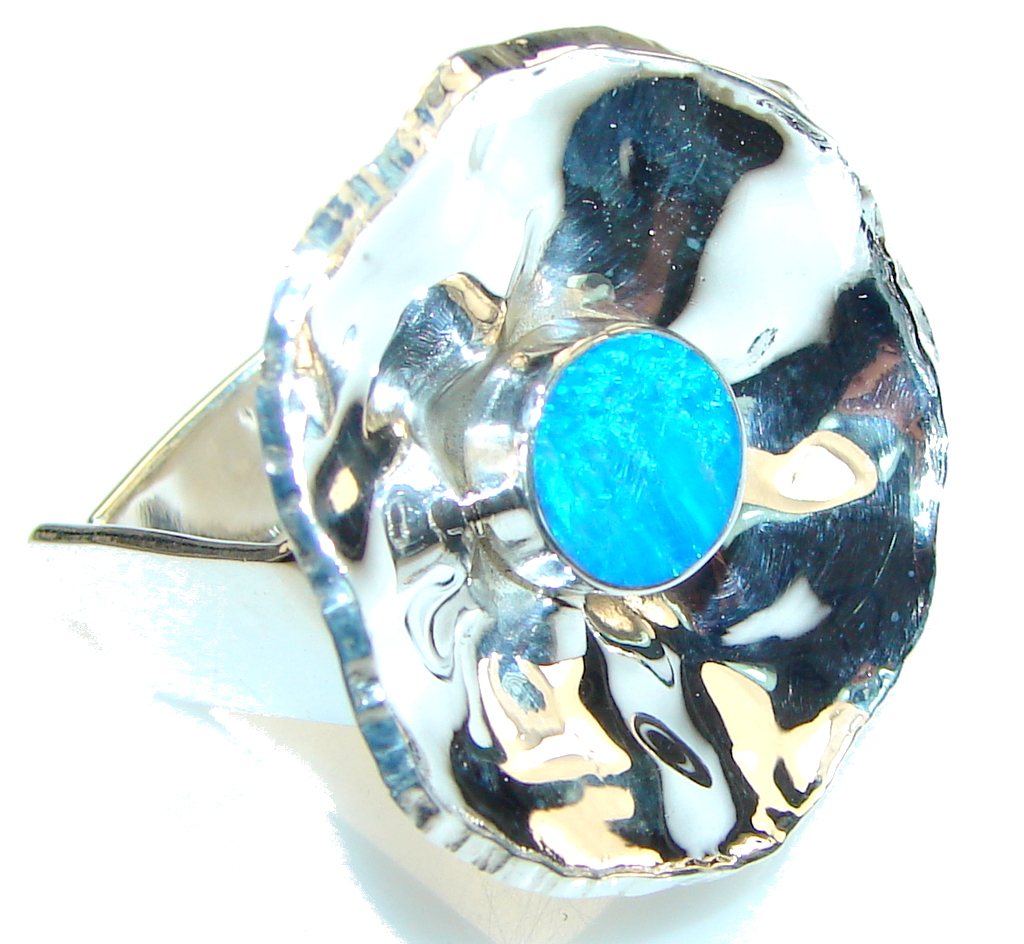 Falling In Love! Blue Fire Opal Sterling Silver ring s. 7- Adjustable