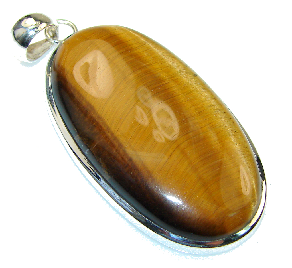 Perfect!! Brown Tigers Eye Sterling Silver Pendant