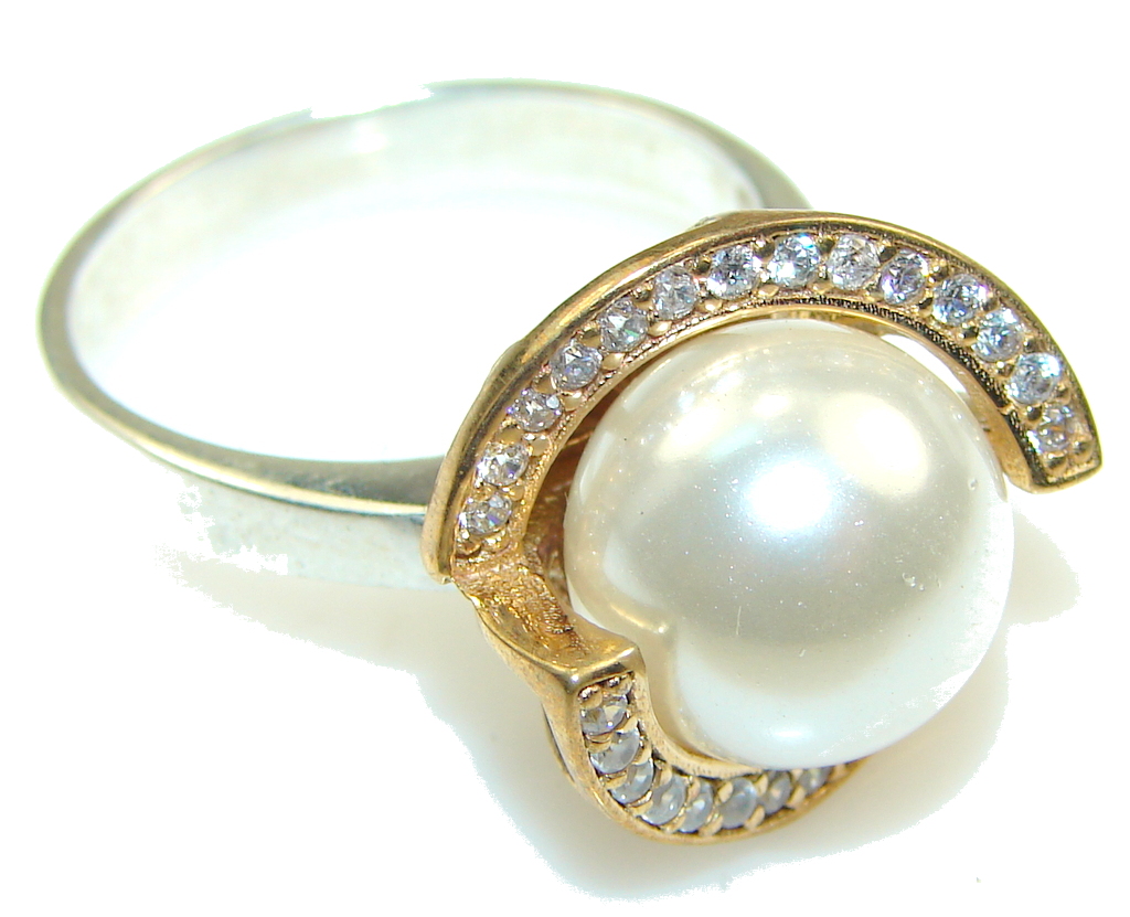 Stunning! Fresh Water Pearl, Gold Plated Sterling Silver ring; 11