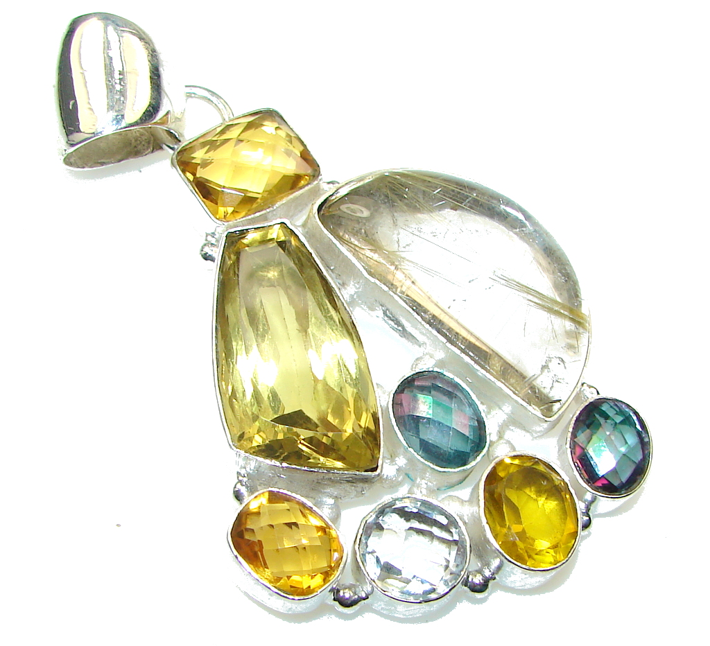 Big! Pale Beauty!! Multistone Sterling Silver Pendant