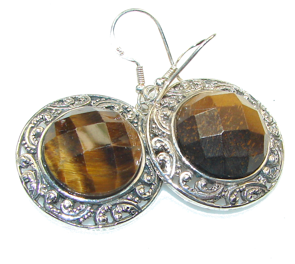 Amazing!! Brown Tigers Eye Sterling Silver Earrings