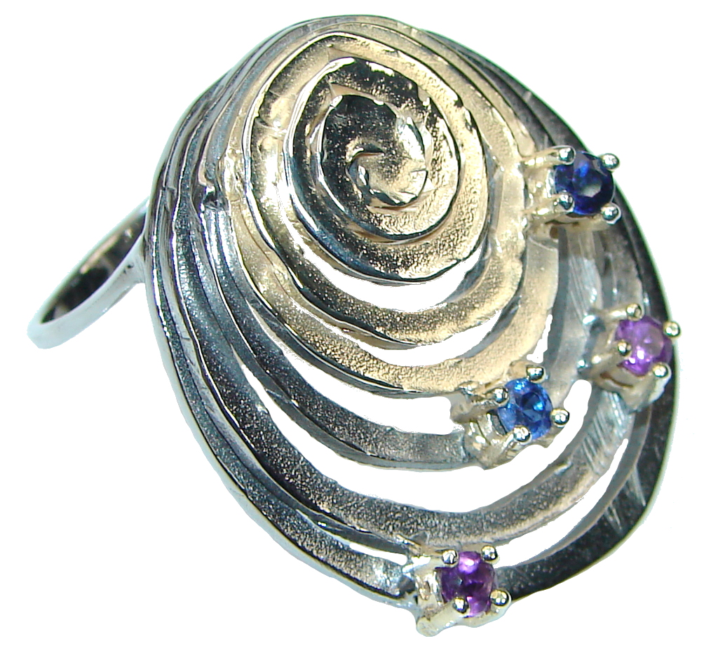Big! Secret Design! Purple Amethyst & Blue Topaz Sterling Silver Ring s. 8 1/4