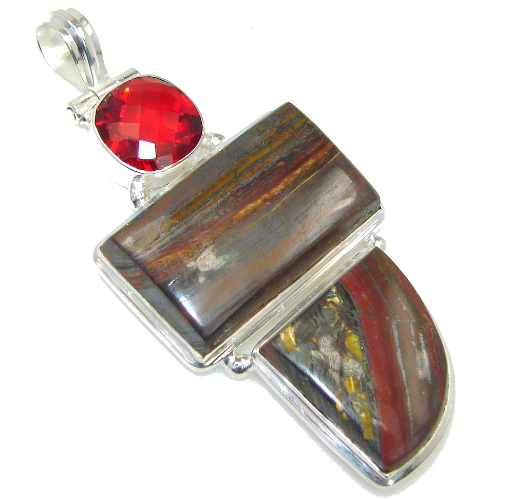 Big! Natural Red Sonora Jasper Sterling Silver Pendant