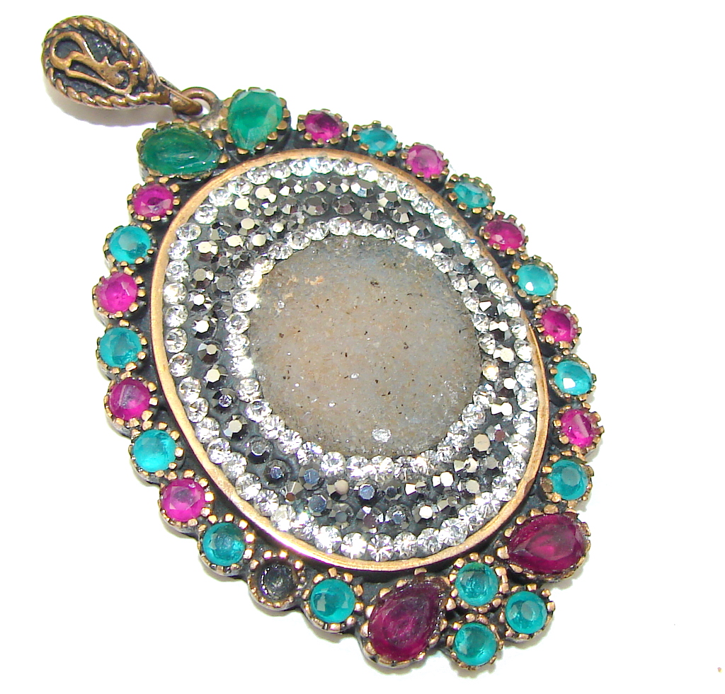 Victorian Style! Gray Druzy Sterling Silver Pendant