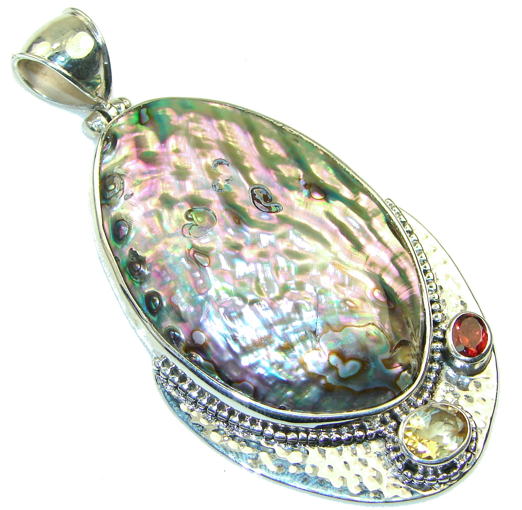 Big! Delicate Rainbow Abalone Sterling Silver Pendant