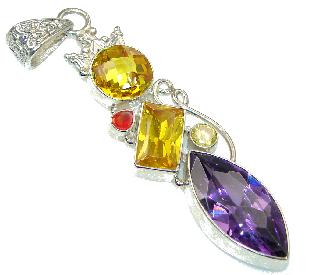 Big! Spark Of Life! Multicolor Quartz Sterling Silver Pendant