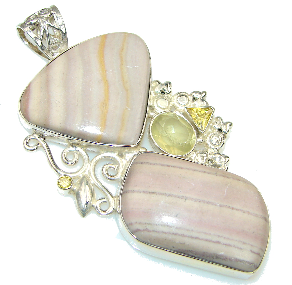 Large! Excellent Pink Lace Agate Sterling Silver Pendant