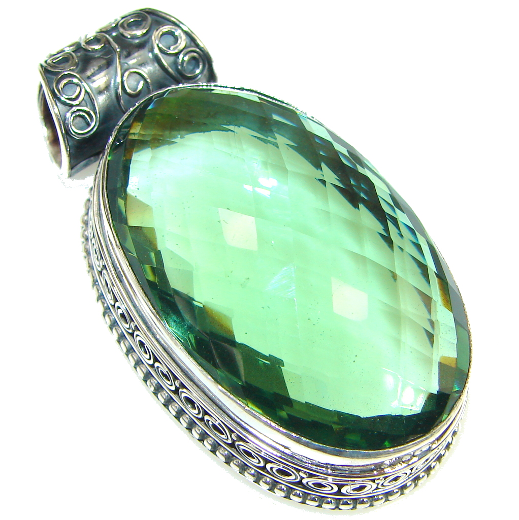 Green Island!! Green Quartz Sterling Silver Pendant