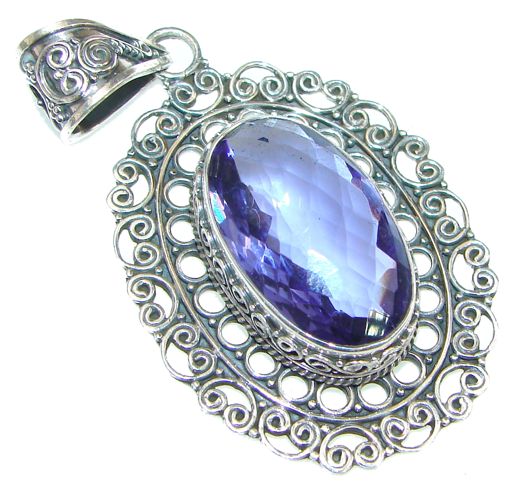 Excellent Created Amethyst Sterling Silver Pendant