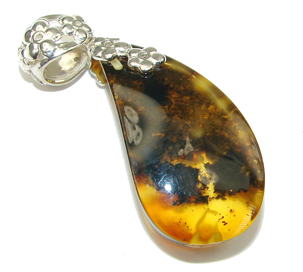 Stylish AAA Baltic Polish Amber Sterling Silver Pendant