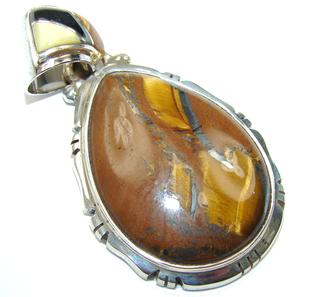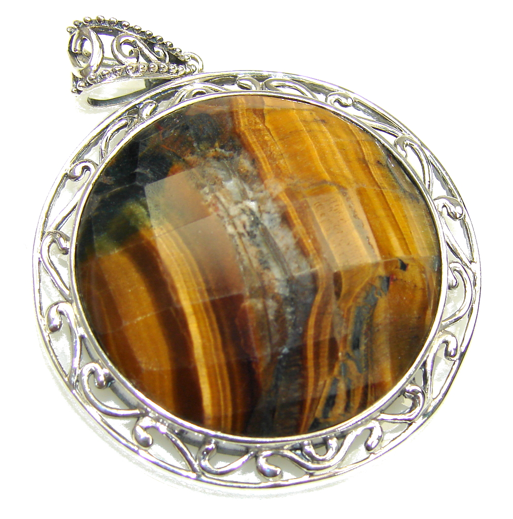 Amazing AAA Brown Tigers Eye Sterling Silver Pendant