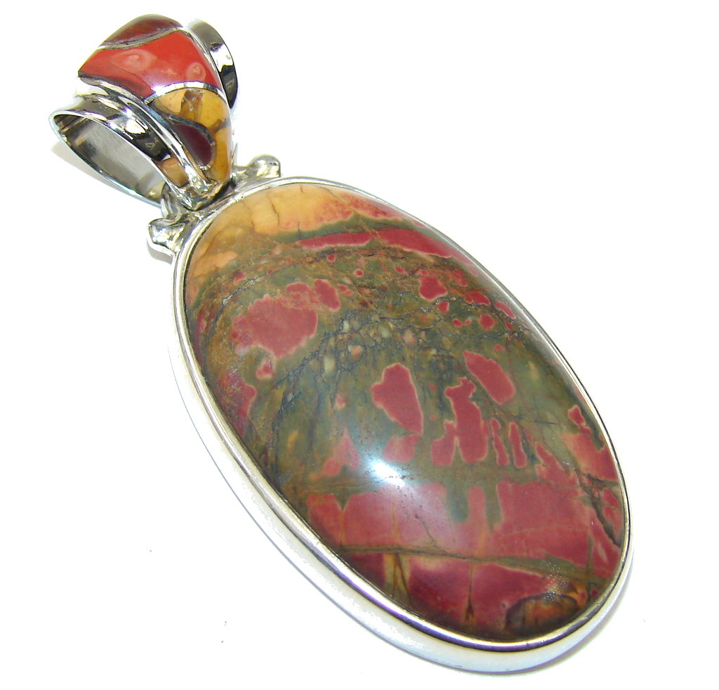 Large! World Of Beauty! Red Sonora Jasper Sterling Silver Pendant