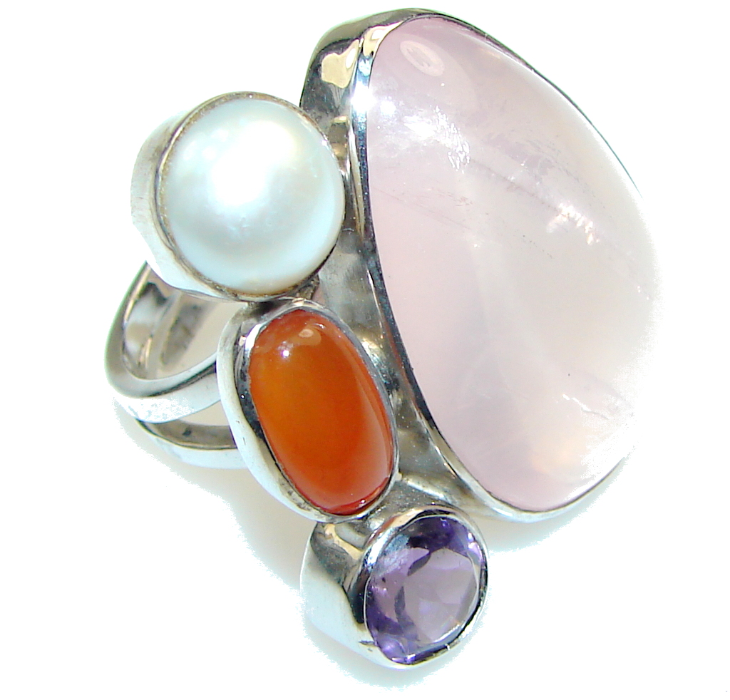 Fabulous! Rose Quartz Sterling Silver Ring s. 7 - Adjustable