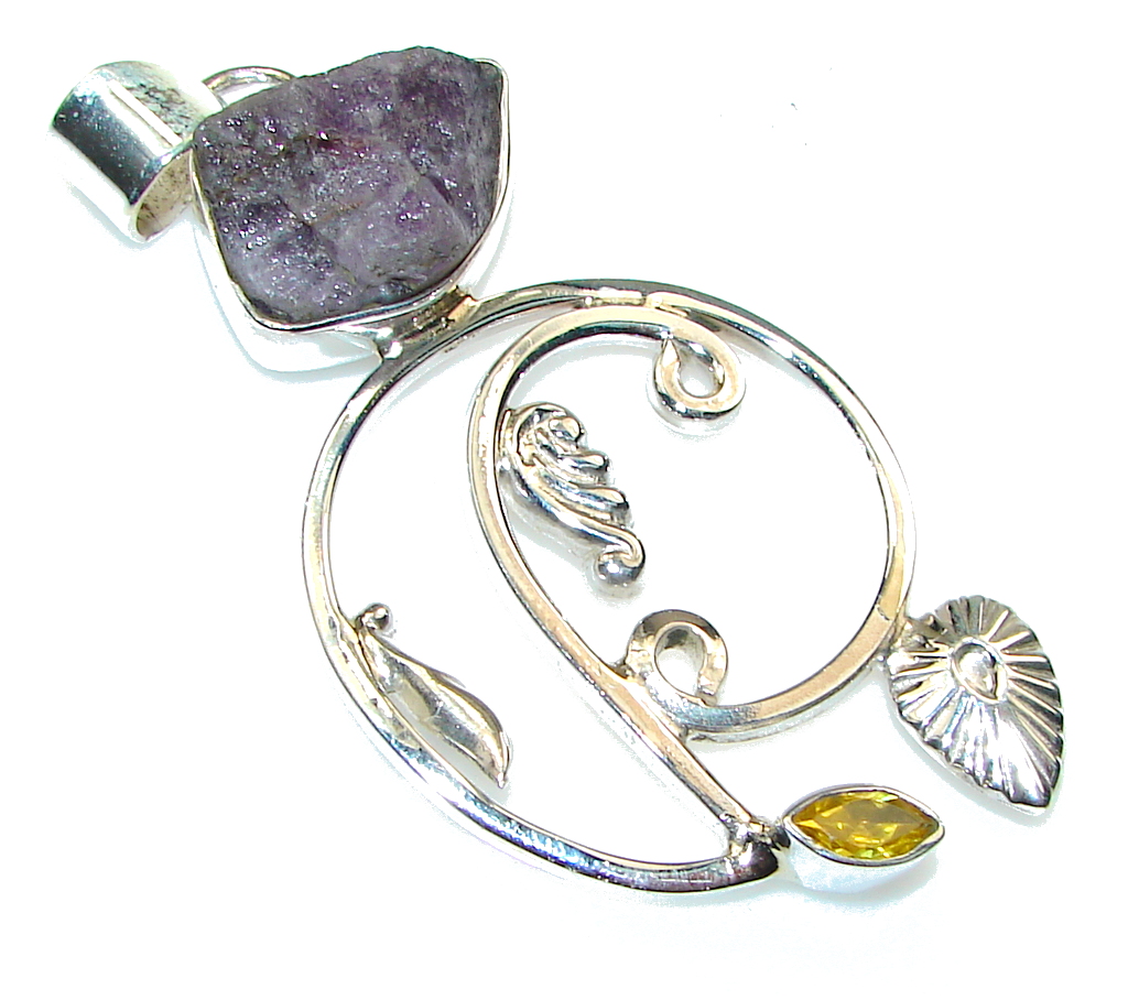 Stylish Design!! Amethyst Cluster Sterling Silver Pendant