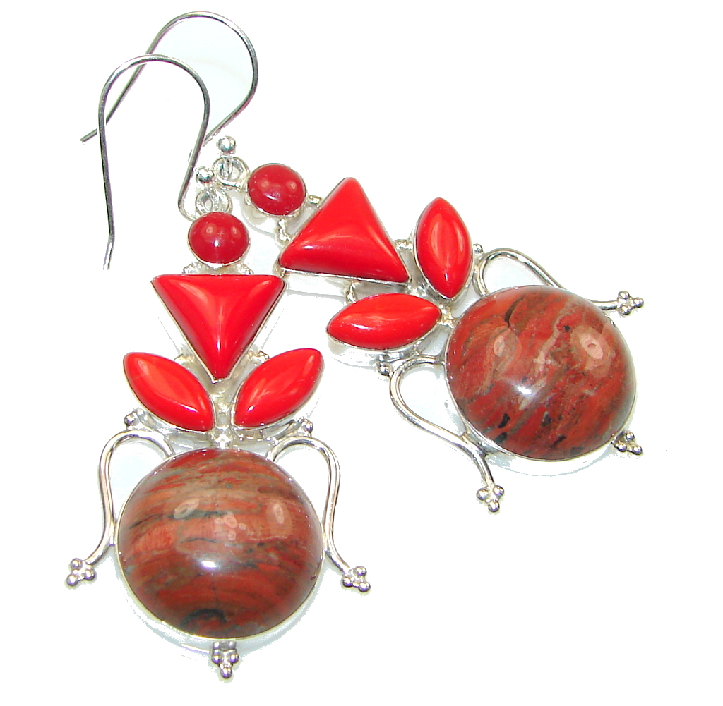 Natural Red Jasper Sterling Silver Earrings