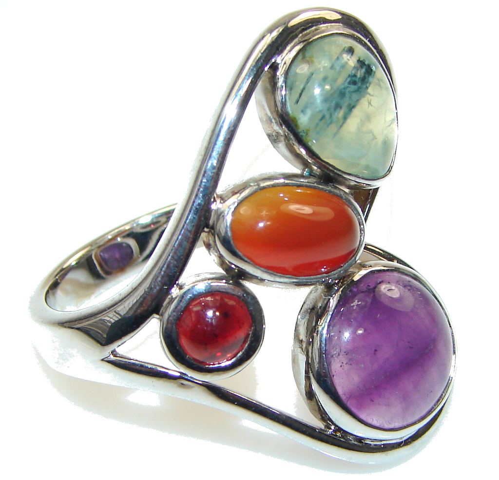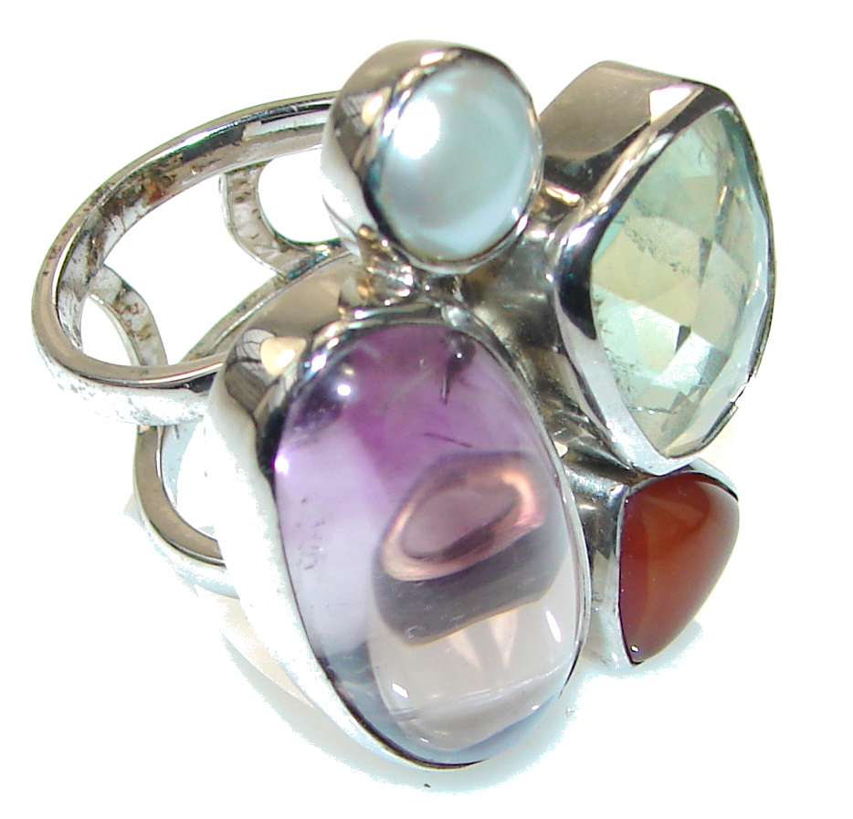 Chunky Multistone Amethyst Sterling Silver Ring s. 7 3/4
