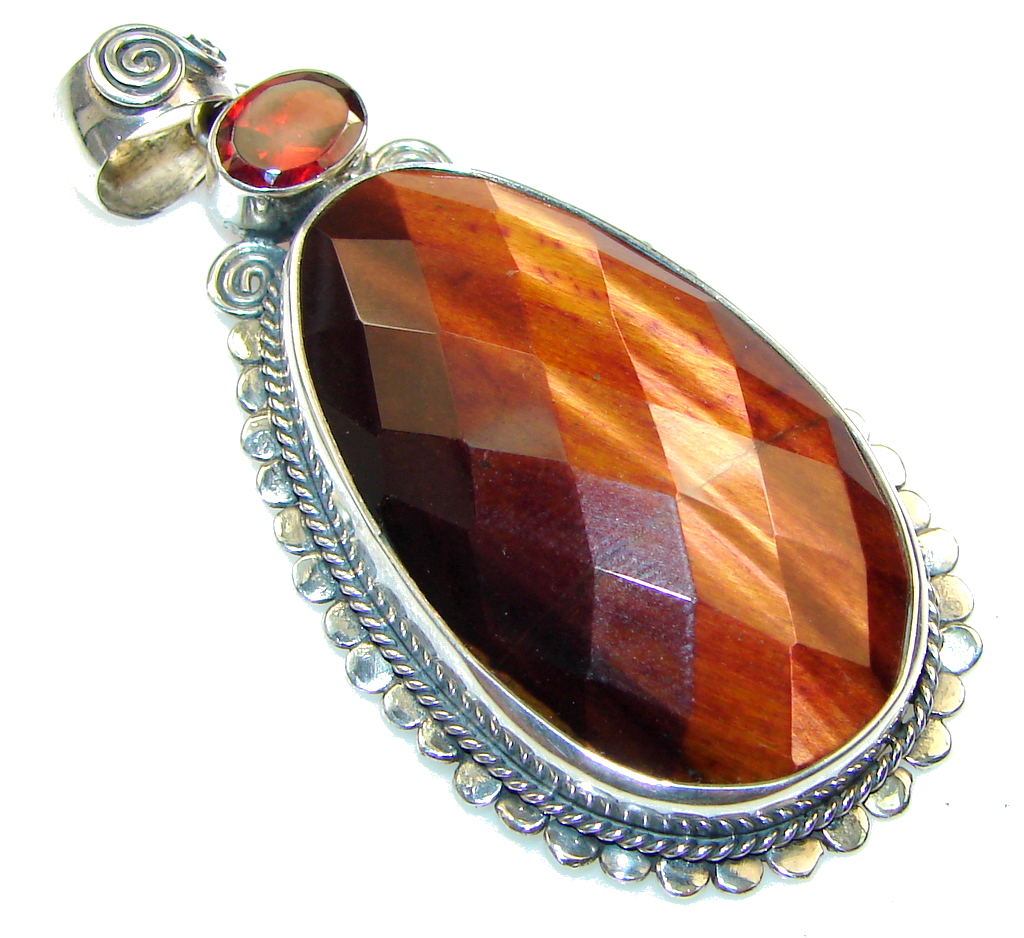 Large! Exclusive Golden Tigers Eye & Citrine Sterling Silver Pendant