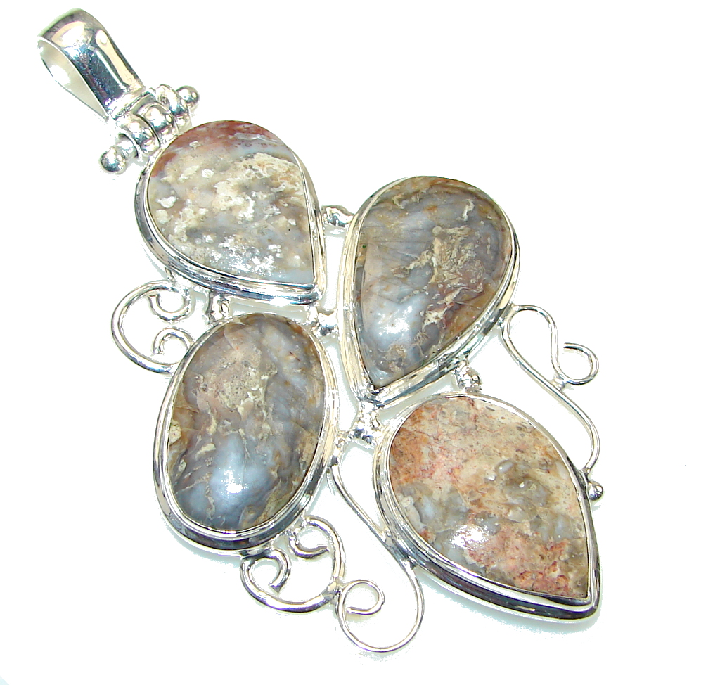 Big! Beautiful Ocean Jasper Sterling Silver Pendant