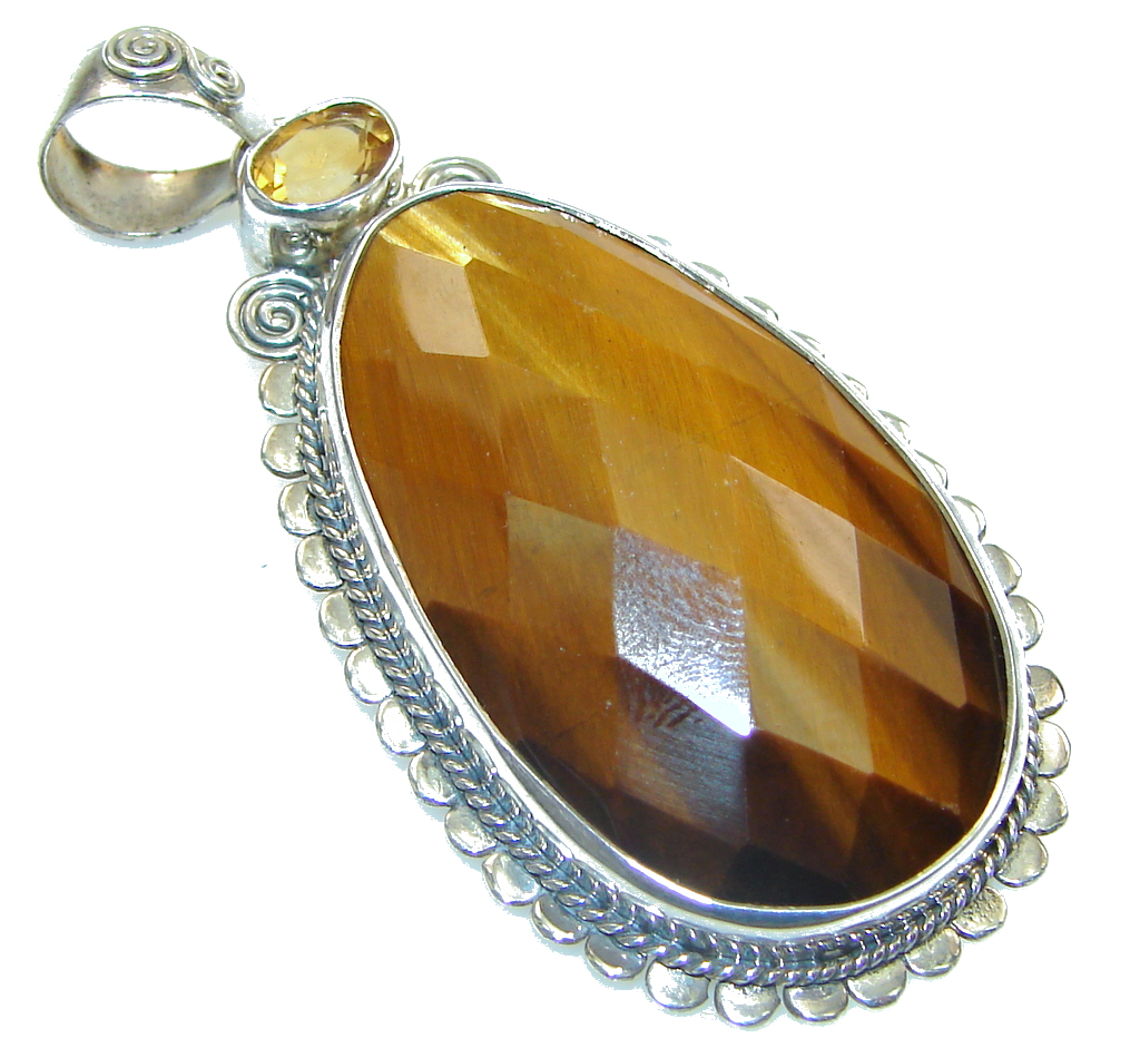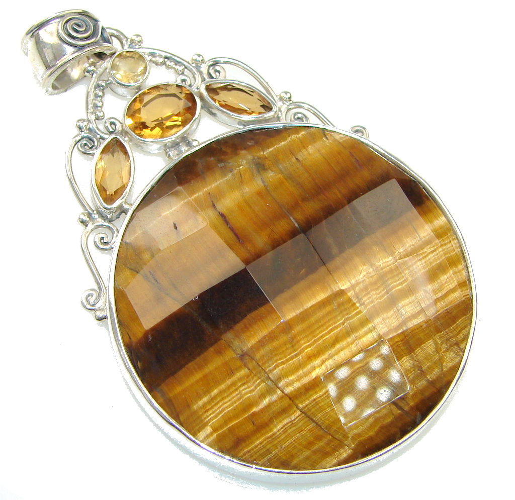 Secret Brown Tiger's Eye, Citrine Sterling Silver Pendant