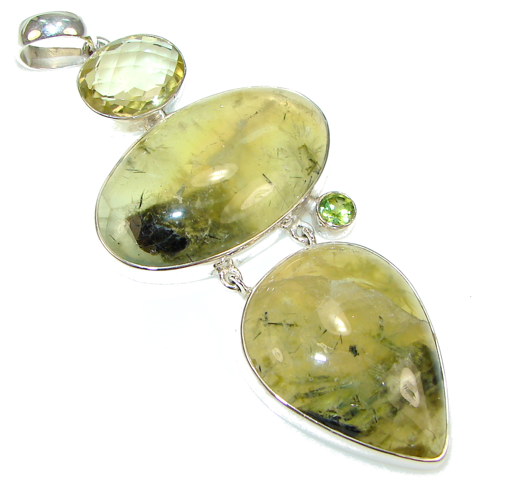 Big! Lime Treasure! Green Moss Prehnite Sterling Silver Pendant
