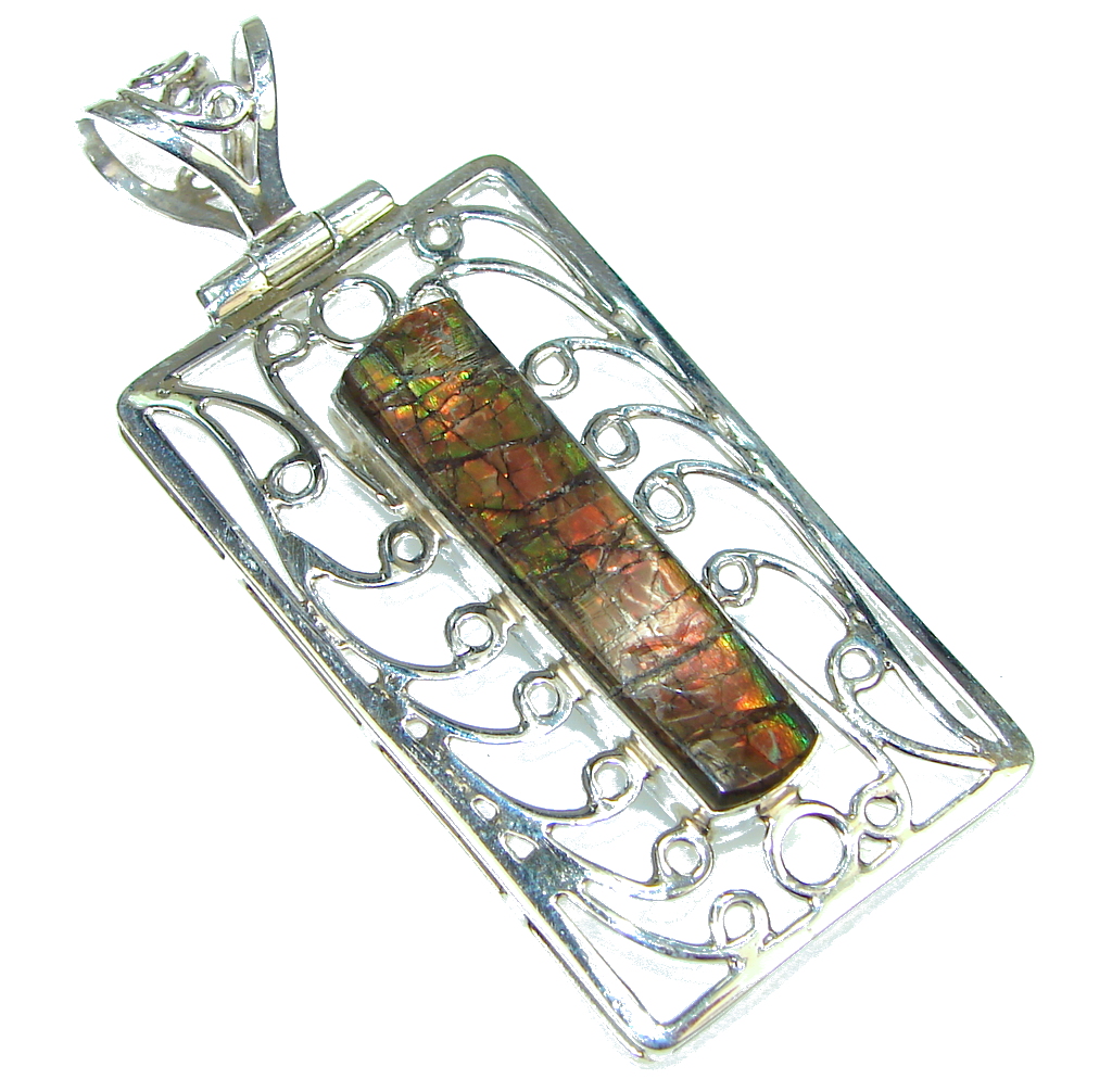 Natural Red Ammolite Sterling Silver Pendant