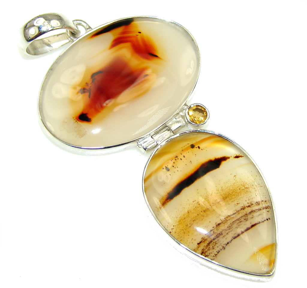 Stunning Brown Moss Agate Sterling Silver Pendant