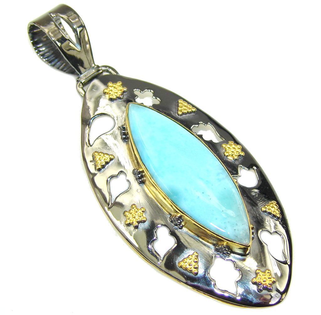 Handcrafted AAA Blue Larimar Two Tones Sterling Silver Pendant