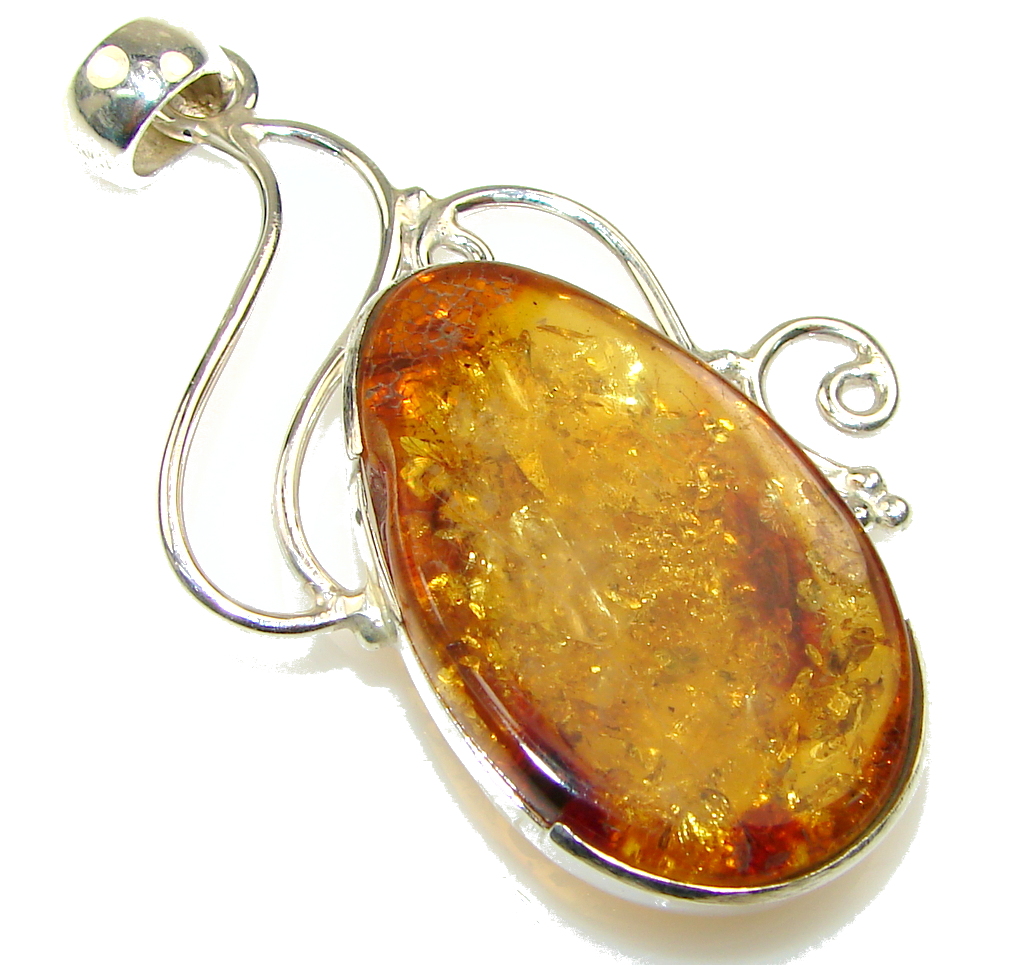 Natural Brown Polish Amber Sterling Silver Pendant