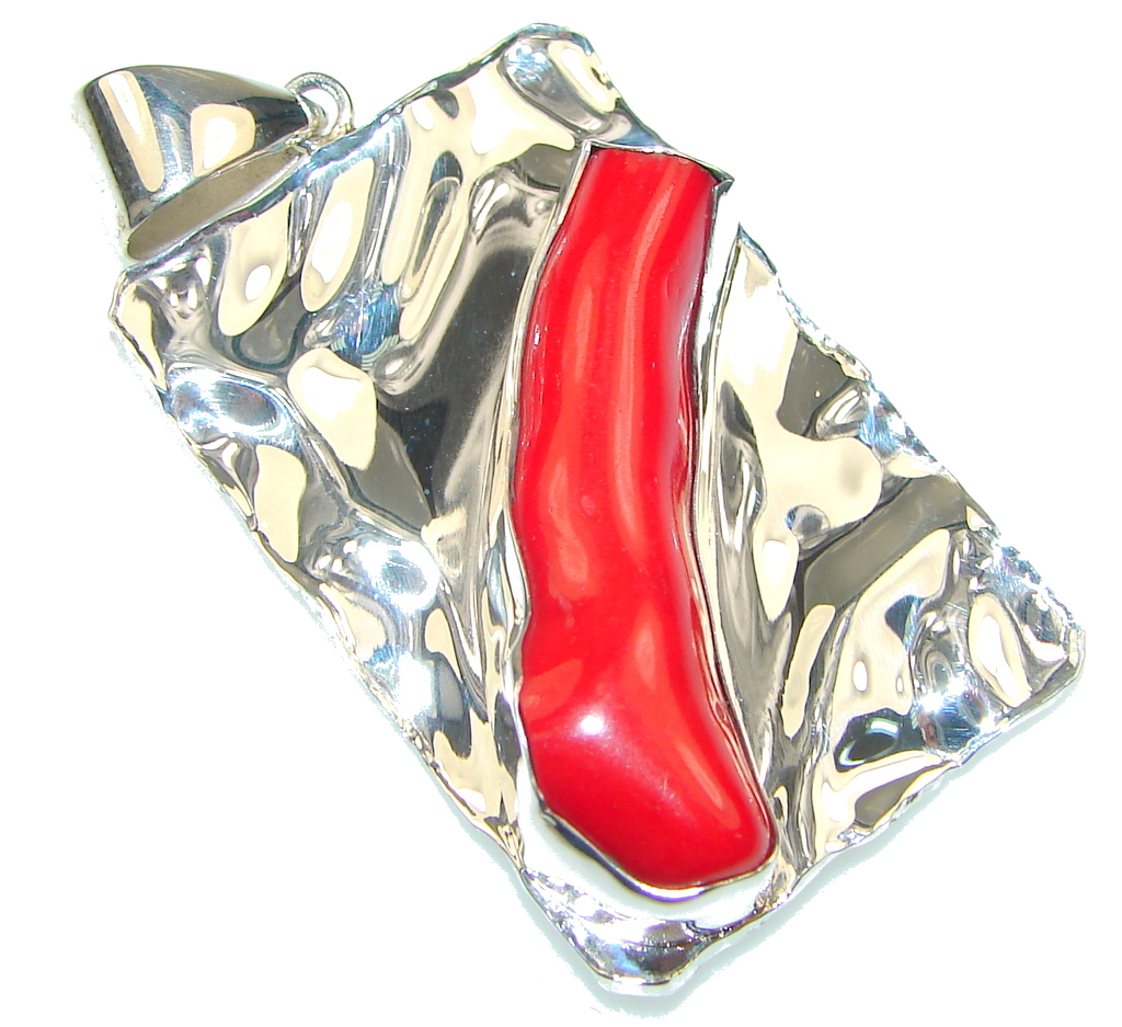Genuine! Red Fossilized Coral Sterling Silver pendant